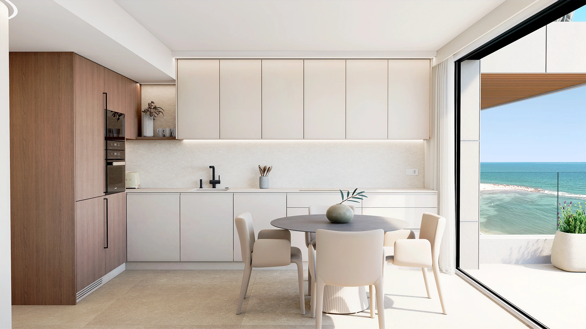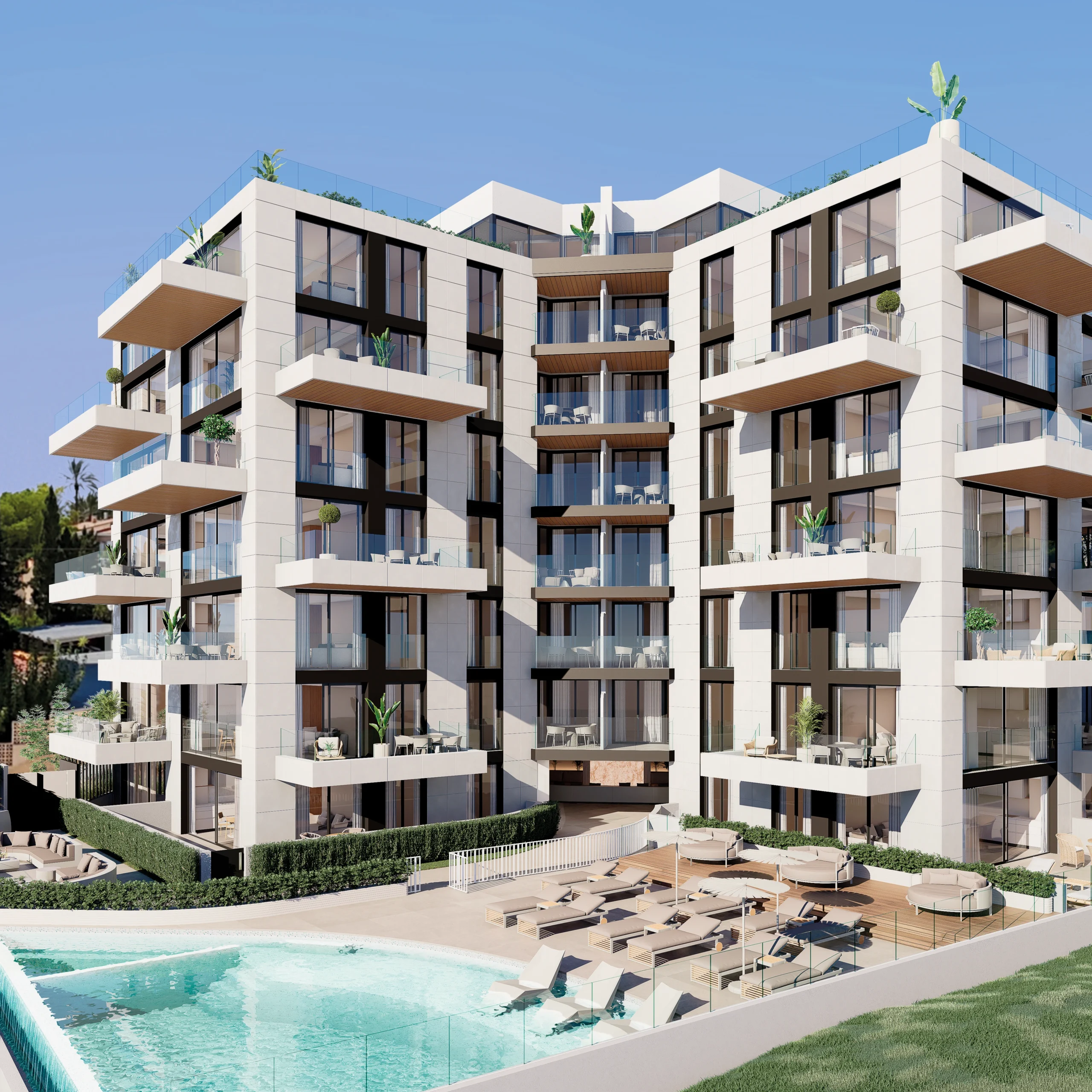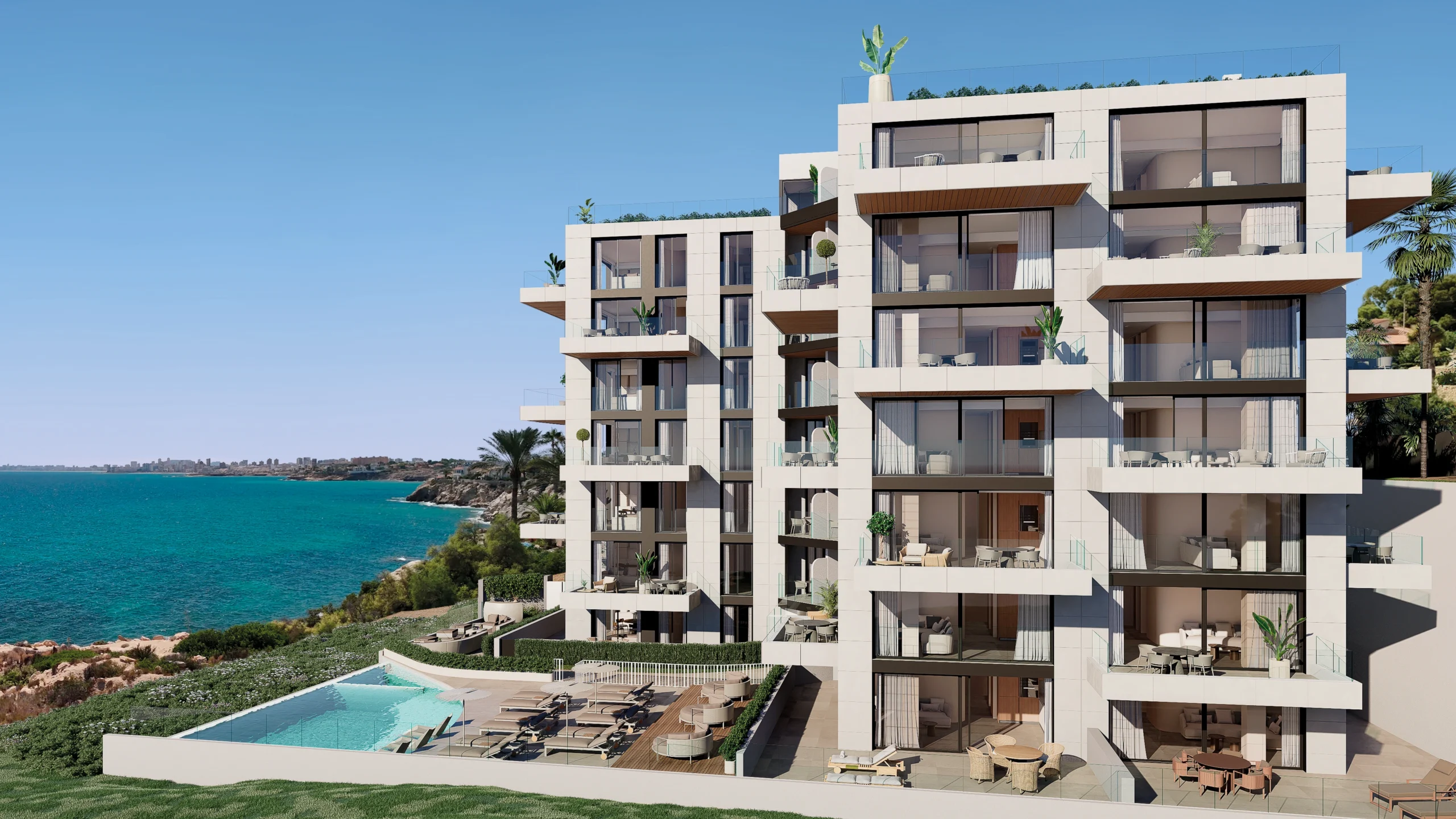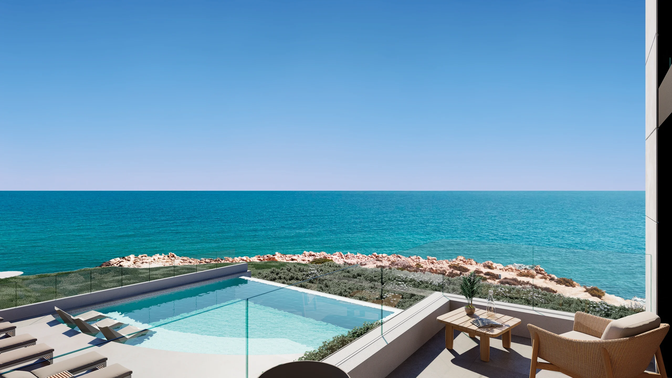 A luxury building directly facing the Mediterranean Sea, composed of 42 exclusive apartments, featuring an extensive private communal area designed for relaxation, wellness, and a truly elevated lifestyle. The development includes an infinity pool with stunning sea views, a spacious sunbathing area overlooking the Mediterranean, an elegant chill-out zone for enjoying time with friends, a fully equipped gym, sauna, open-air space for yoga and pilates, coworking area, bicycle parking, and private vehicle garage.